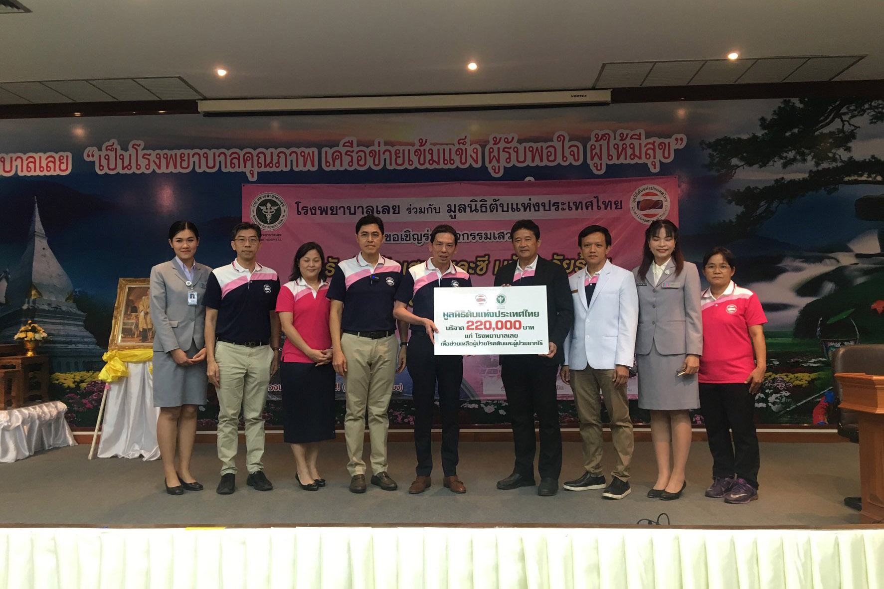 เมื่อวันศุกร์ที่ 17 มกราคม 2563 ที่ผ่านมา มูลนิธิตับแห่งประเทศไทย ได้ร่วมกับโรงพยาบาลเลย จัดโครงการให้ความรู้และตรวจตับสัญจร ครั้งที่ 14 “ ไวรัสบีและซี มหันตภัยร้ายรักษาได้ ก่อนสายเกินแก้” ณ ห้องประชุมภูหลวง ชั้น 5 ตึกอำนวยการ โรงพยาบาลเลย การจัดกิจกรรมครั้งนี้ มีผู้เข้าร่วมกิจกรรมเสวนากว่า 240 คน ในงานมีการบรรยายให้ความรู้เกี่ยวกับโรคตับ ไวรัสตับอักเสบบี ซี มะเร็งตับ และ ยากับสมุนไพรในผู้ป่วยโรคตับ และตอบปัญหาข้อสงสัยต่างๆ มีผู้เข้าร่วมเจาะเลือดตรวจคัดกรองไวรัสตับอักเสบบีและซี จำนวน 185 คน พบผู้ติดเชื้อไวรัสตับอักเสบบีจำนวน 13 คน พบผู้ติดเชื้อไวรัสตับอักเสบซี 12 คน และมีผู้เข้ารับการตรวจพังผืดตับกว่า 50 คน ในรายที่มีผลการตรวจผิดปกติได้รับคำแนะนำจากแพทย์ พร้อมทั้งนัดตรวจเพิ่มเติมตามระบบของ โรงพยาบาลแล้ว ในการนี้ทางมูลนิธิตับแห่งประเทศไทย ได้มอบเงินบริจาคเพื่อช่วยเหลือผู้ป่วยโรคตับที่ขาดแคลนทุนทรัพย์และผู้ป่วยยากไร้ จำนวน 220,000.00 บาท