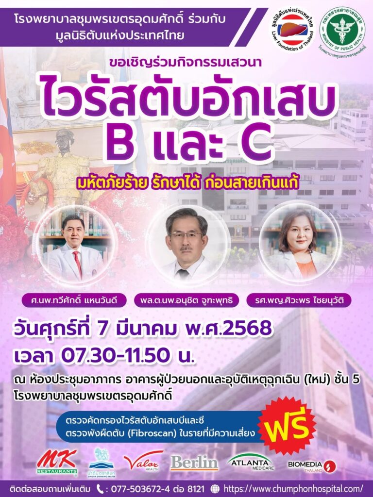 ภายในงานท่านจะได้พบกับกิจกรรมการตรวจคัดกรองไวรัสตับอักเสบบีและซี ฟรี!! พร้อมให้บริการตรวจพังผืดตับ (Fibroscan) ในรายที่มีความเสี่ยง
