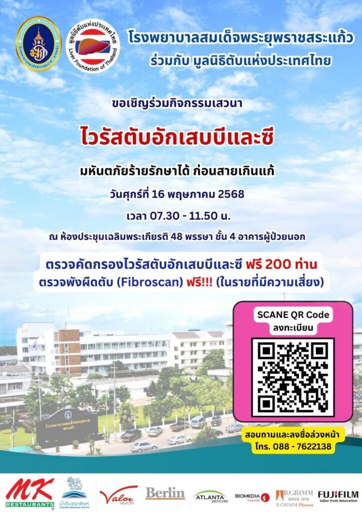 ภายในงานท่านจะได้พบกับกิจกรรมการตรวจคัดกรองไวรัสตับอักเสบบีและซี ฟรี!! พร้อมให้บริการตรวจพังผืดตับ (Fibroscan) ในรายที่มีความเสี่ยง