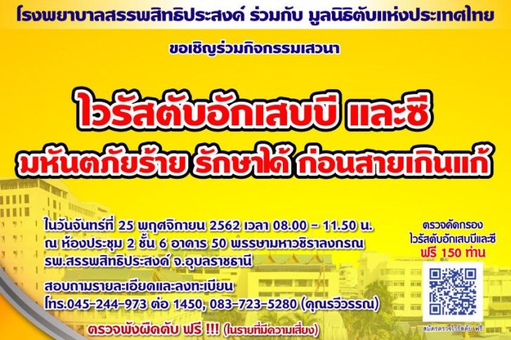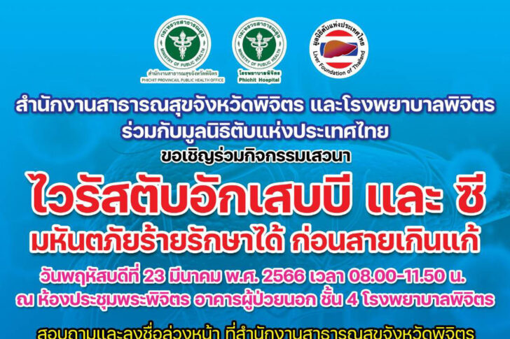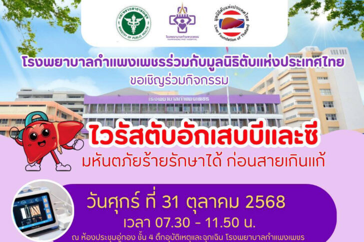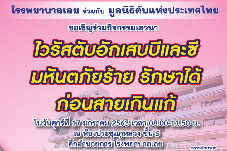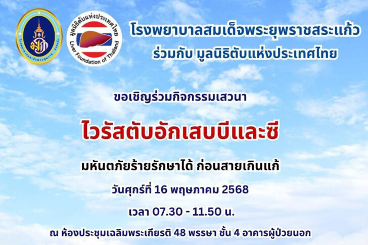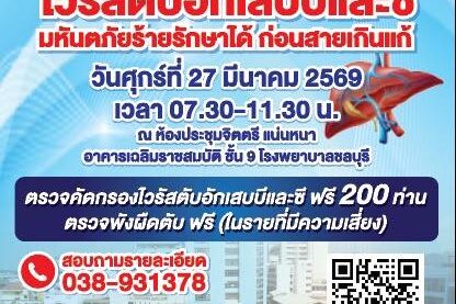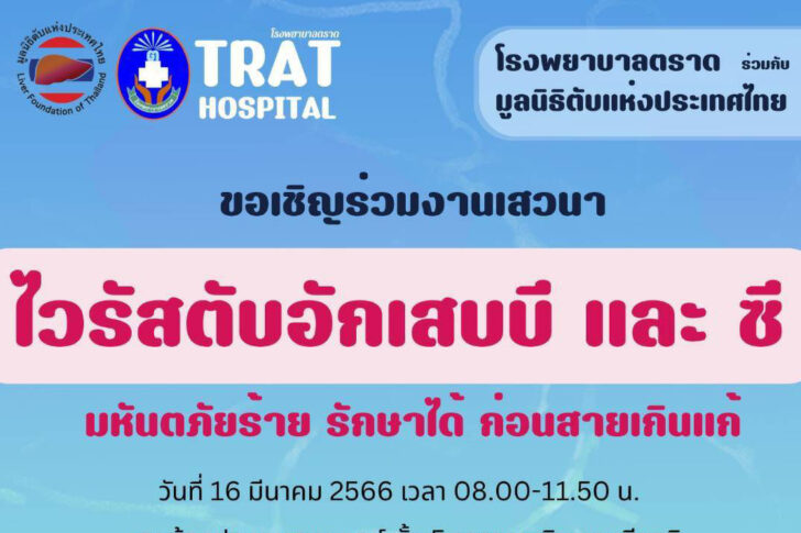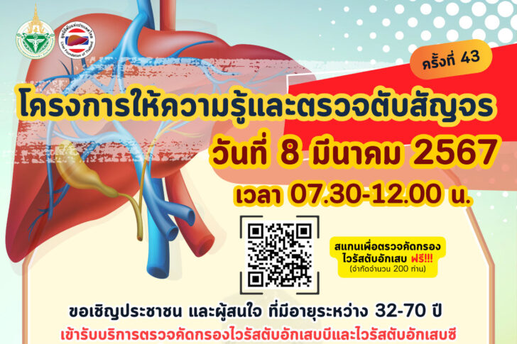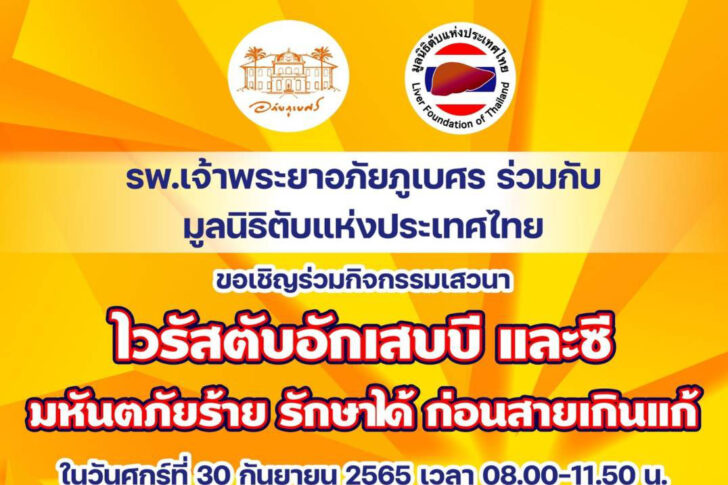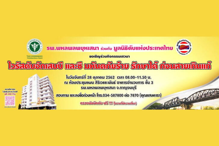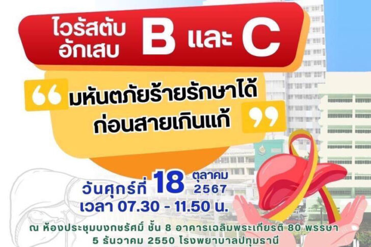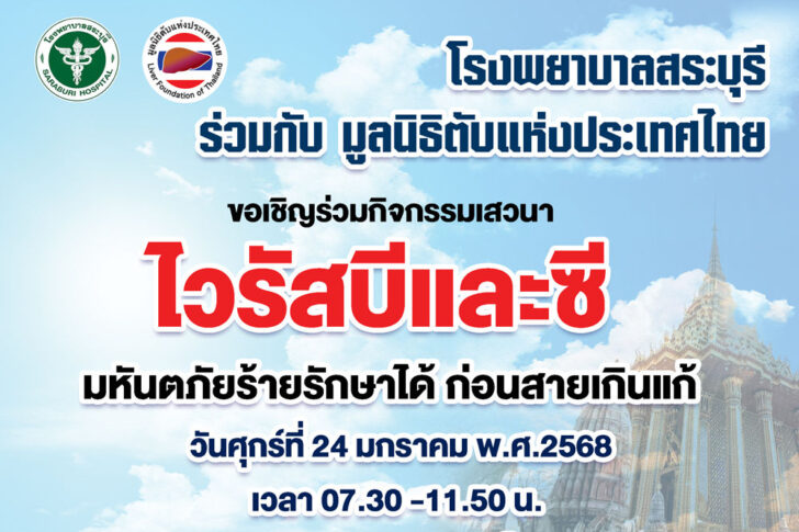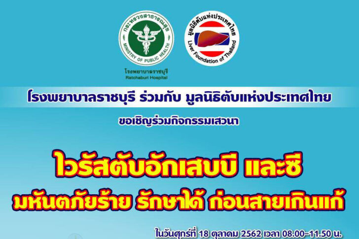 มูลนิธิตับแห่งประเทศไทย ร่วมกับ รพ.บ้านแพ้ว ขอเชิญร่วมงาน “ไวรัสบีและซี มหันตภัยร้ายรักษาได้ ก่อนสายเกินแก้”